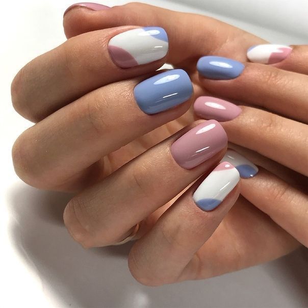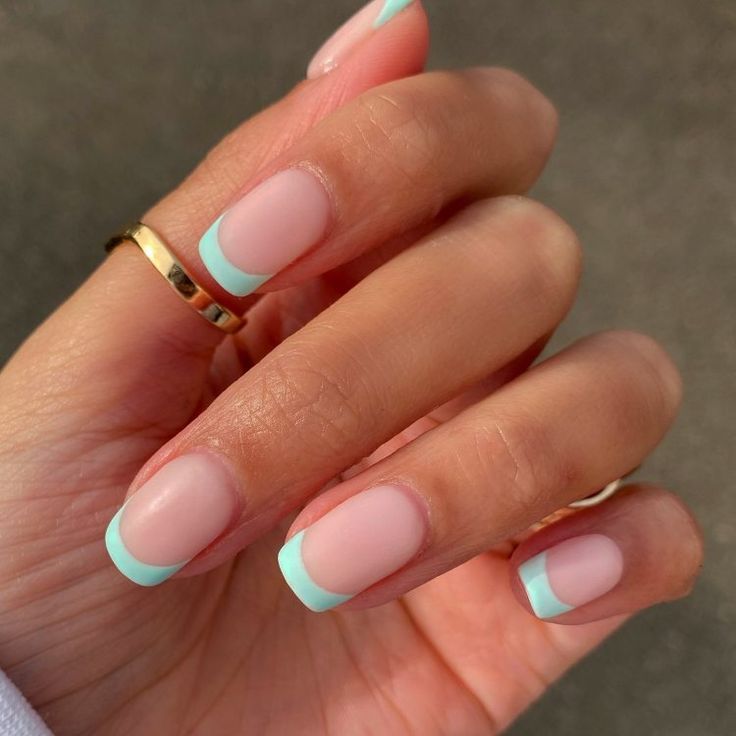 A contemporary twist on the classic French tip, this colored french manicure short nails design uses varying shades of cool blue to create a chic and streamlined look. The juxtaposition of the different blue tones offers a modern and sophisticated vibe, ideal for the minimalist at heart.