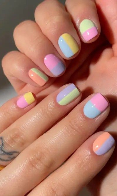 The manicure color pastel pretty nails trend is like a party on your fingertips. Mix soft pastels for a look that’s both playful and refined. This style is perfect for those who love to experiment with color but prefer a softer palette.