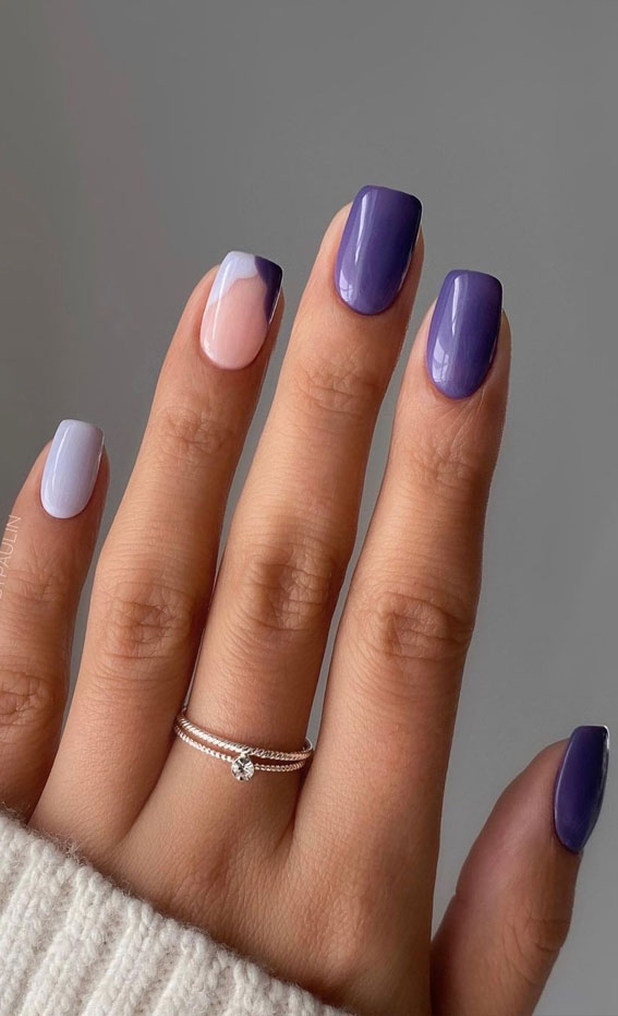 Lavender is a quintessential spring shade, and here it is beautifully rendered with a modern twist. The matte finish on the solid-colored nails pairs exquisitely with the shiny, glitter-coated nail, capturing the duality of spring’s unpredictable weather.