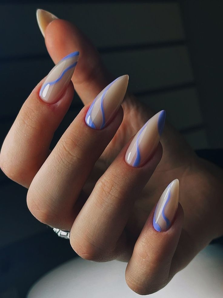 In the sea of popular summer nails, the artistry of these lavender swirls is like a gentle breeze on a warm day. The sheer nude base acts as a soft whisper against which the lavender swirls elegantly dance. It’s a minimalist approach that speaks volumes, perfect for those summer days that call for a touch of sophistication.
