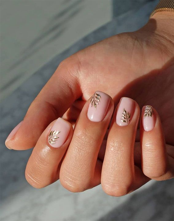 The beauty of this design lies in its simplicity and the precise application of the gold elements that catch the light just so. After your base coat, apply two coats of the nude pink polish. Using a fine brush, carefully place the gold chrome powder onto the nail to form delicate wheat stalks. A steady hand is key to achieving the minimalist look. Seal with a top coat for a glistening finish.