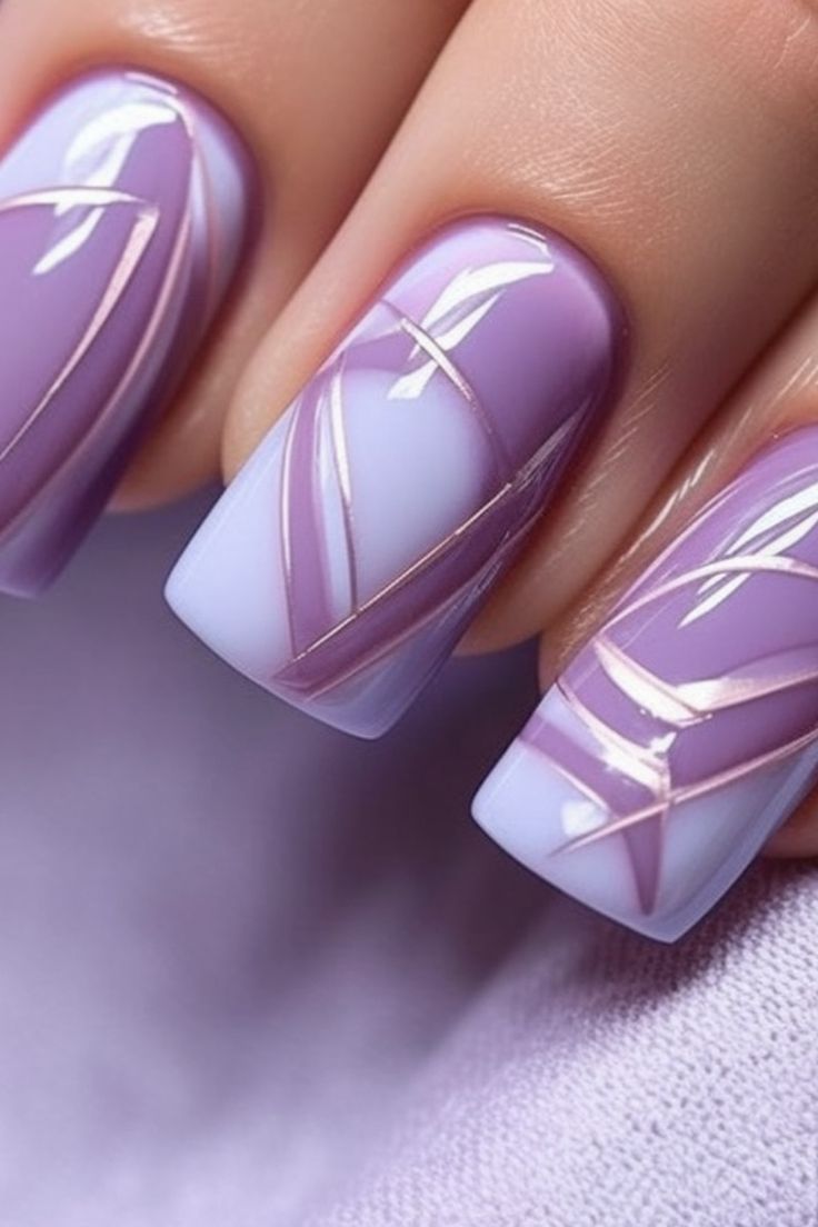 Drawing inspiration from the soothing spring showers, “Purple Rain Stripes” presents a harmonious blend of light and dark purples with crisp white stripes. It’s a sleek and modern take on spring nail ideas purple, offering a look that’s as refreshing as a gentle rain.