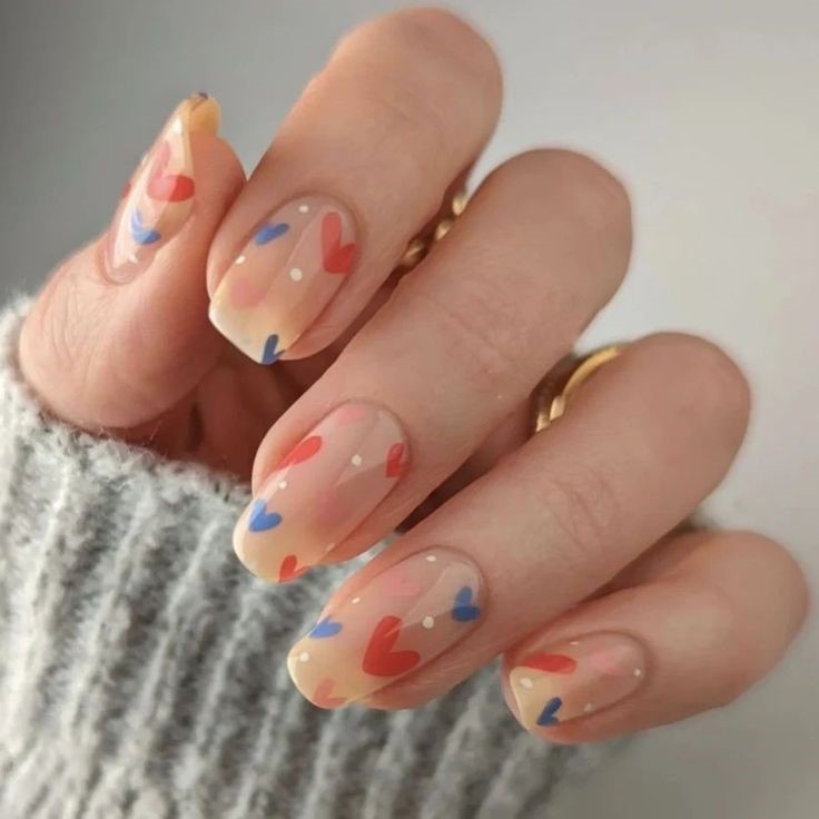 The joy of spring is perfectly captured in the playful dance of red and blue hearts over a translucent base, creating a round nails spring design that’s both youthful and romantic. This manicure is a cheerful expression, ideal for a short round nails spring look that’s full of life. It’s a reminder that fashion is not just about following trends, but also about personal storytelling through style.