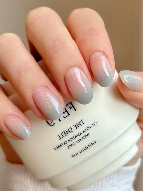 Imagine holding a cup of your favorite springtime tea with nails that exude classic charm yet whisper modern sophistication. This ombre design begins with a soft, milky base that gently melts into a whisper of grey at the tips. It’s a cute, understated look that pairs well with professional and casual outfits alike.