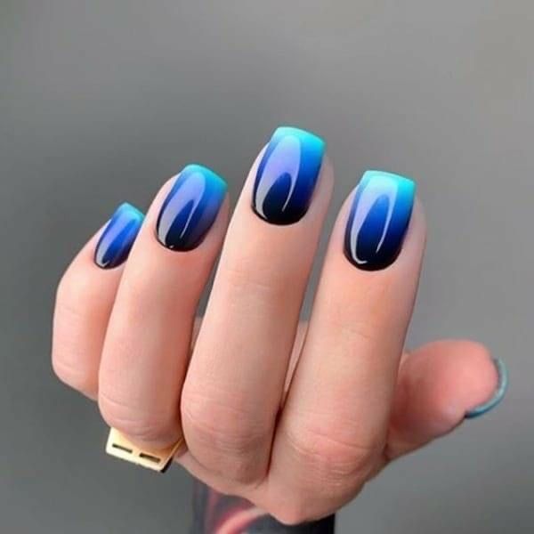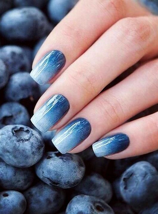 For a touch of rustic charm, these nails with their faded blueberry to slate blue ombre are as comforting as a homemade pie cooling on the windowsill.