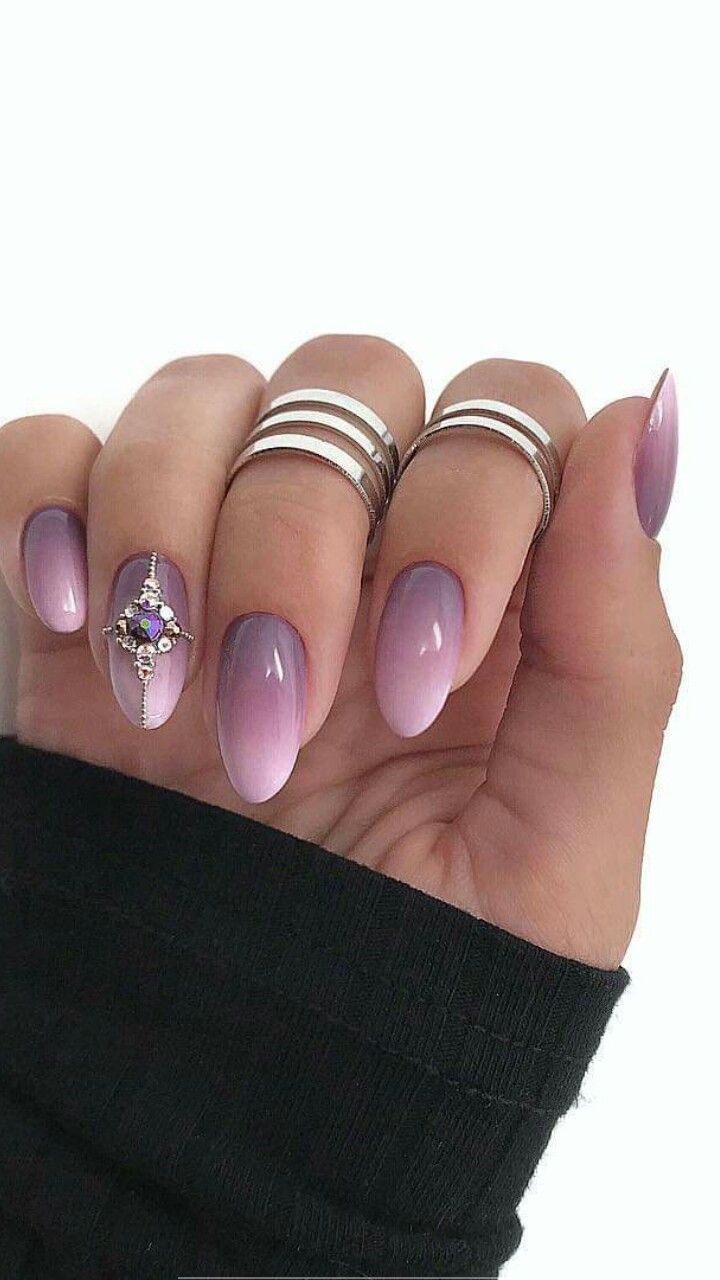 Make a regal statement with nails that showcase a smooth transition from a soft pastel to a deep purple. Adorned with a jeweled accent nail, it’s a look fit for a queen.