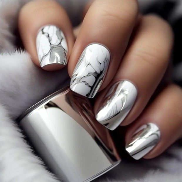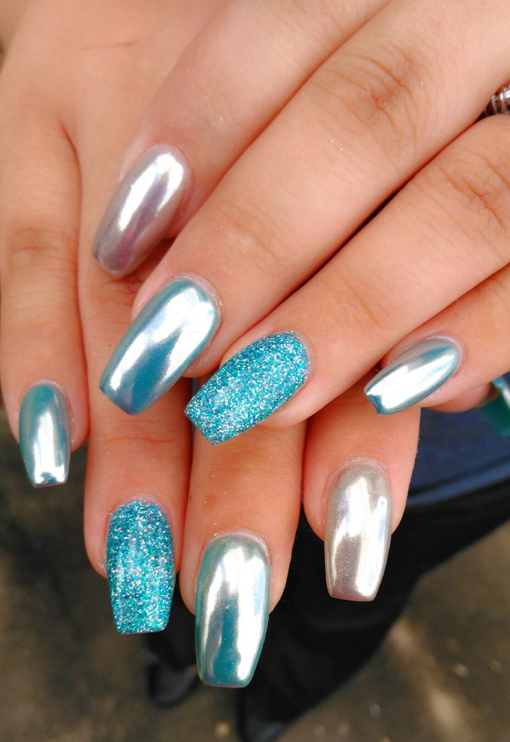 The fluidity of molten metal is captured beautifully in these silver chrome nails that look like liquid. They’re a futuristic take on chrome nails designs spring, offering a sleek and sophisticated option for nail art enthusiasts.
