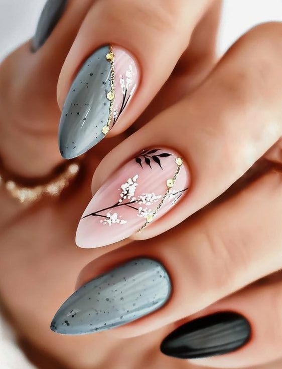 Steering away from the traditional spring palette, these spring nails coffin black dare to defy norms with their stark contrast and white floral accents. It’s a design that speaks to the bold-hearted, those who find beauty in the unexpected. The simple yet striking floral artwork against the black base creates an intriguing visual narrative.