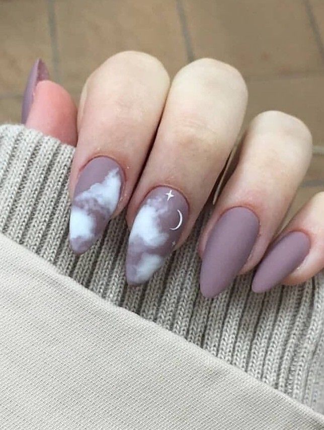 A dreamy depiction of the night sky, these spring nails coffin purple with cloud-like marbling and celestial accents transport you to a tranquil evening under the stars. The lilac base, symbolizing early spring skies, is both soothing and enchanting, making it a favorite for those who favor a whimsical approach to their nail art.