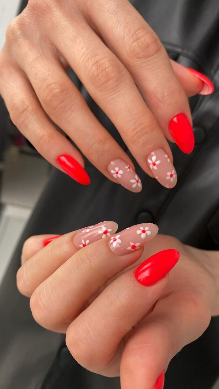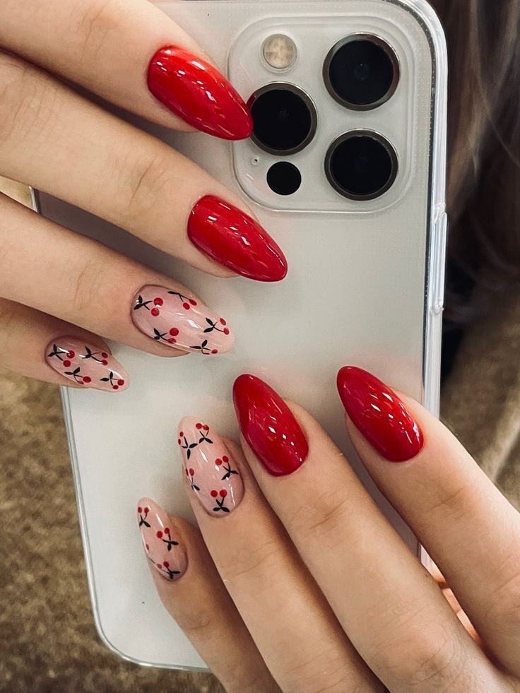For those who prefer a softer look, spring nails redondas (round nails) with playful red designs offer a whimsical touch. The curved edges and playful patterns are reminiscent of spring’s gentle nature, perfect for the dreamer and the romantic.