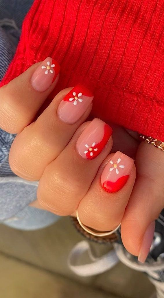 This is a twist on the spring nails red french design, where the iconic white tips are replaced by a blooming red, infusing traditional style with a burst of spring energy. The design speaks to the timeless appeal of the French manicure while staying trendy and season-appropriate.