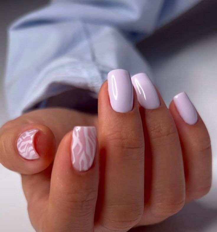 Lilac is the quintessential summer shade, and this gel nail designs short nails summer style takes it to new heights with a full lilac coloring accented by a unique white pattern on selective nails. This design is a favorite for those seeking a playful yet short gel nails summer bright designs.
