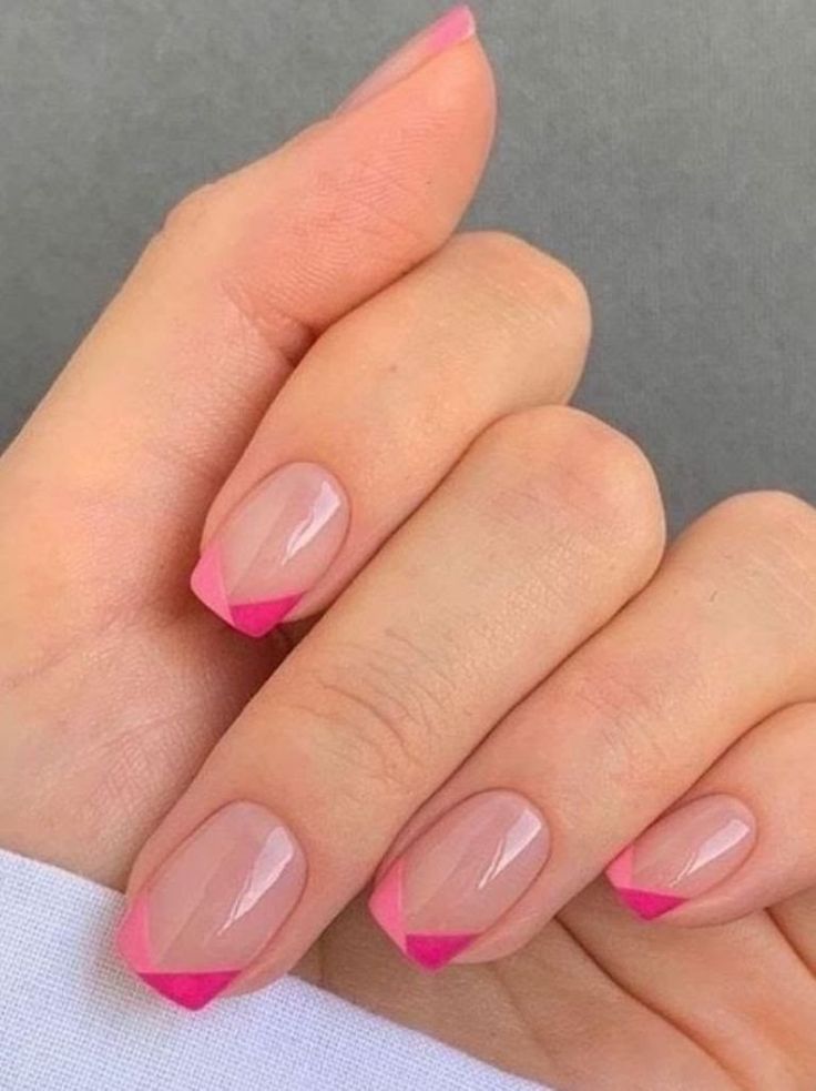 This nail design is a geometric dream with its crisp Pink edges and a nude base. Perfect for summer gel nails designs beach outings, it’s both eye-catching and elegant, reflecting the joyous spirit of summer.