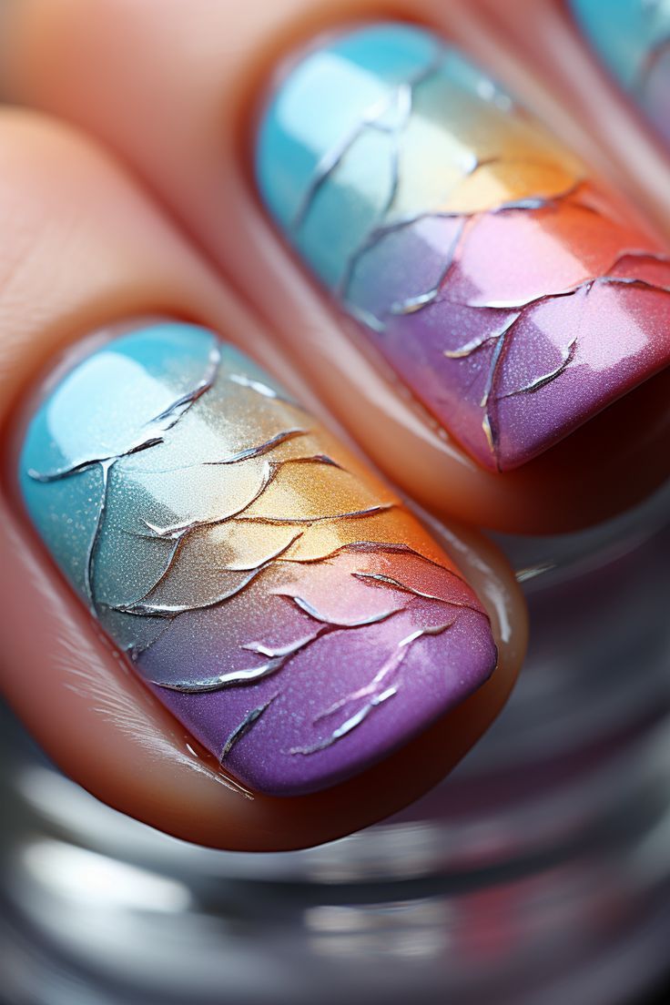 Pastel rainbows on nails offer a soft, dreamy look, perfect for those who want a splash of color without going overboard. Each nail transitions into another color, creating a seamless gradient that is at once delicate and joyful, ideal for beach simple short looks.