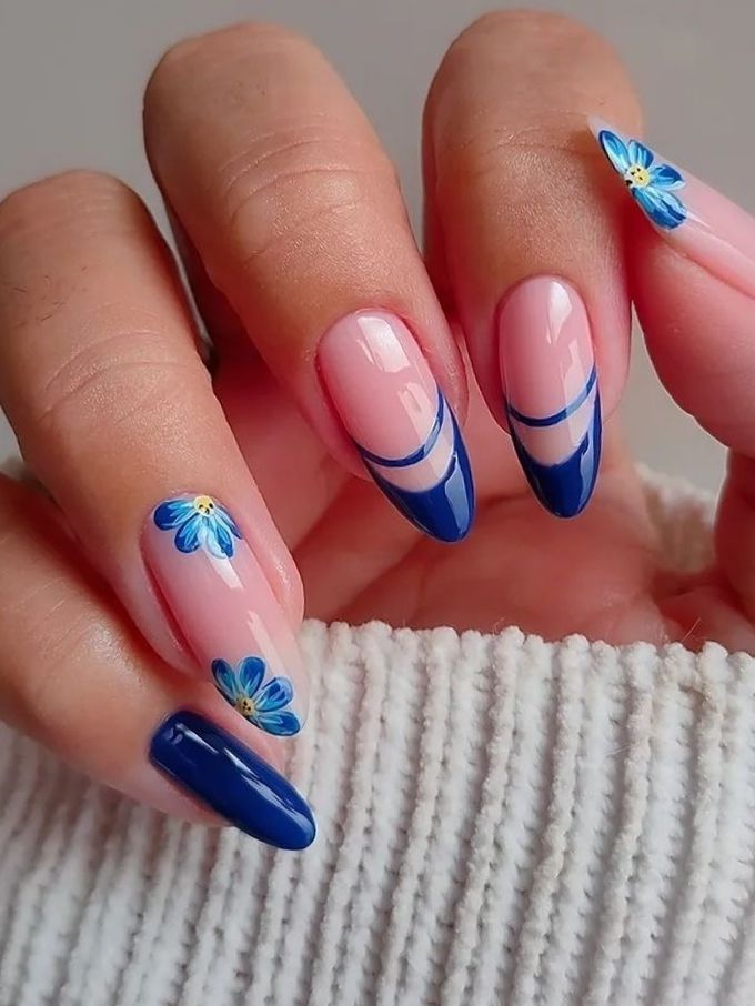- Deep blue and soft pink nail polish