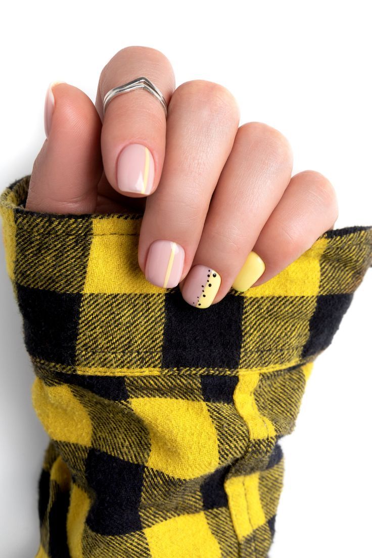 - Sunny yellow and soft pink nail polish