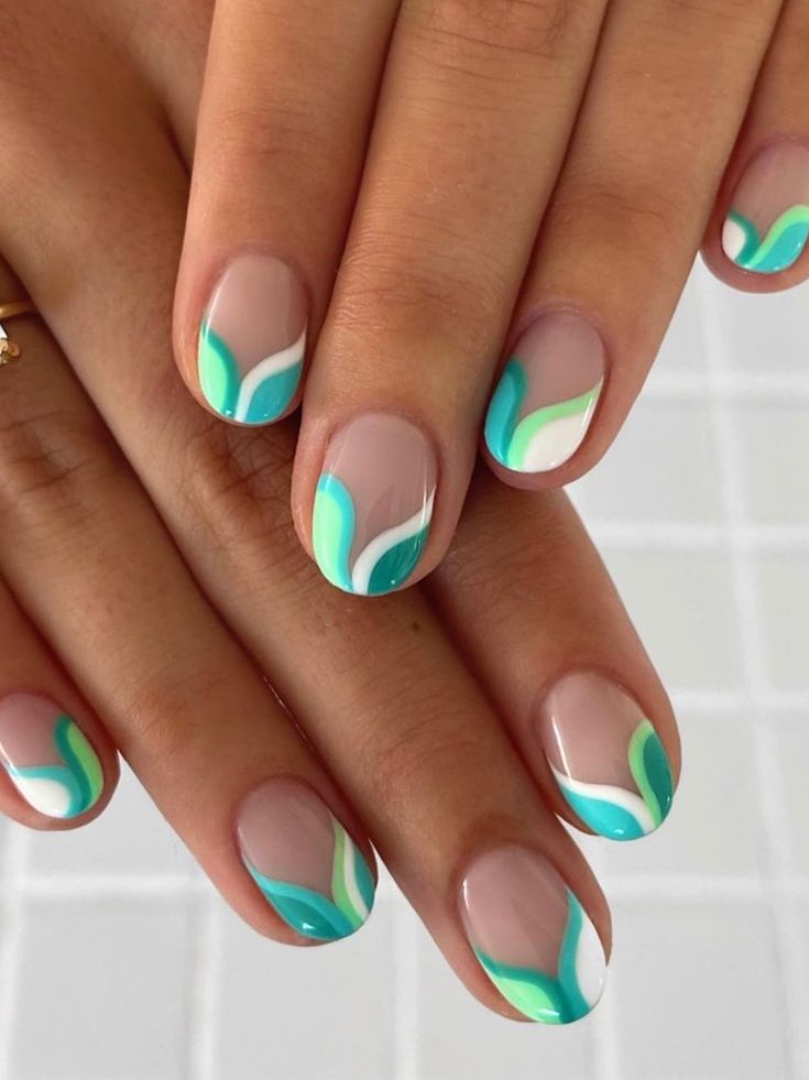 - Professional Opinion: These summer vacation nails short are a masterful display of calm and creativity. The clear base allows the natural beauty of the nail to shine through, while the wave design in shades of blue brings the tranquility of the sea right to your fingertips.