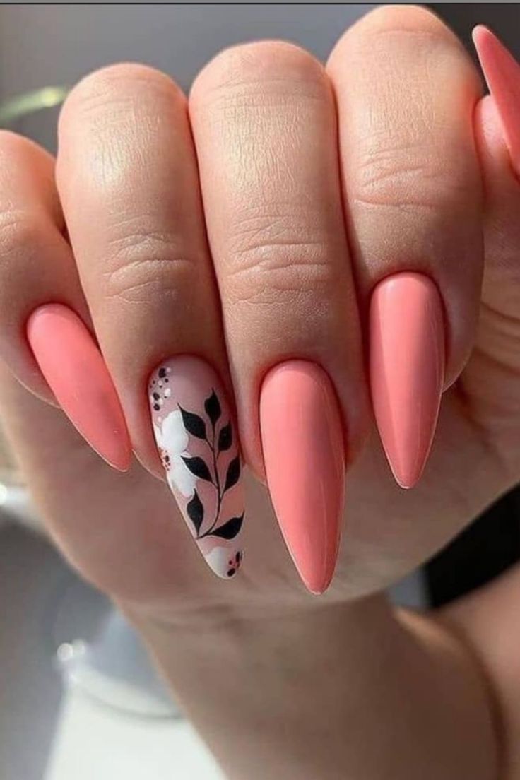 - Professional Opinion: A soft pastel pink provides a romantic backdrop to a detailed floral design, evoking the delicate beauty of summer’s flora. The use of summer vacation nails coffin shape offers an elongated canvas for the intricate black and white botanicals, making this a prime choice for those looking for something both elegant and eye-catching.