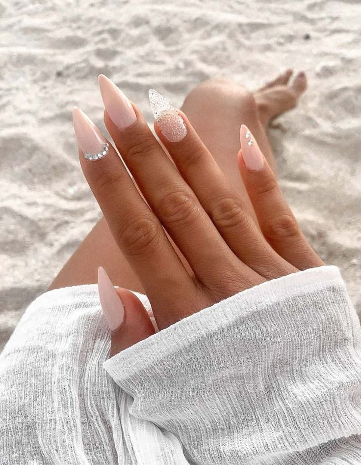 - Professional Opinion: The almond shape here works perfectly with the nude palette to create an elongating effect on the fingers. The textured accent provides a clever nod to summer vacation nails beach, offering a tactile element that’s as interesting to look at as it is to touch.