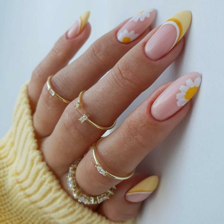 Sunny Disposition: Daisy and Pastel Yellow Nails