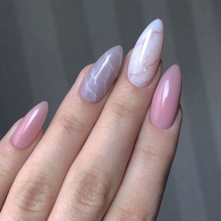 As if carved from the finest marble, these nails are a masterpiece of design, with swirls of white and gray creating a marbled effect that is both timeless and on-trend for April. The pink base on the other nails complements the marbled effect with a subtle nod to the blooming flora of the season. This design is perfect for those who appreciate the artistry in nature and seek to reflect it in their style.