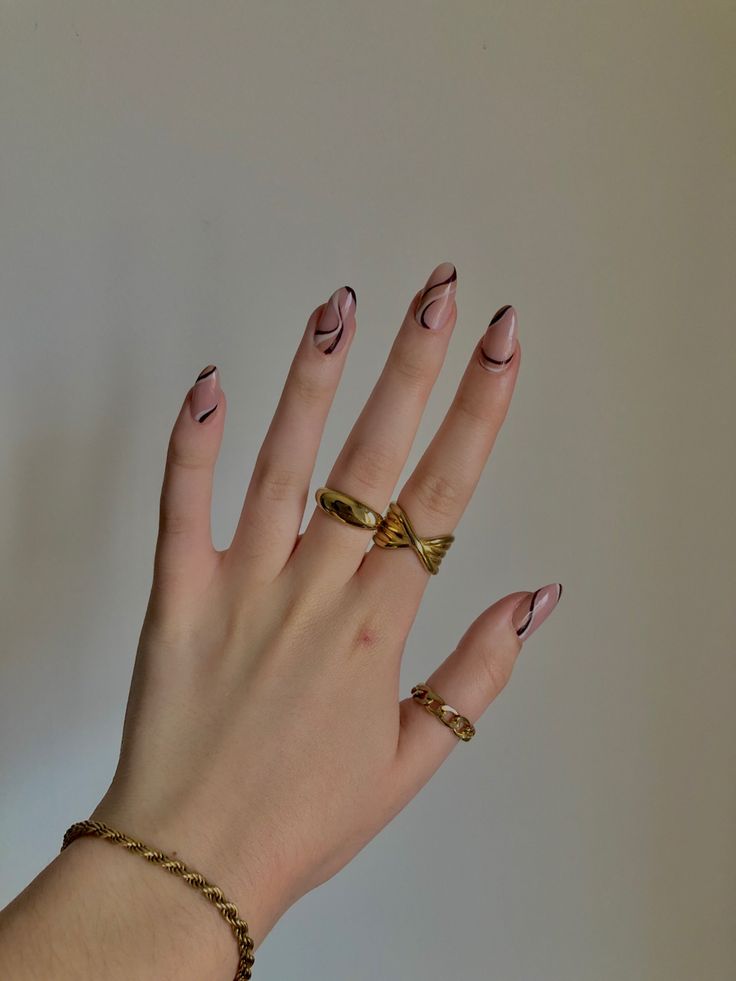 With a sleek almond shape, the nails featured in represent the epitome of minimalist chic. The beach mexico almond nails don a captivating nude base with a subtle hint of black outlining, marrying simplicity with a touch of mystery. Ideal for the woman who loves to convey elegance without overstatement, these nails are a testament to the saying that sometimes, less is indeed more.