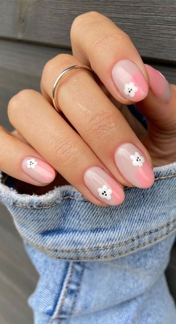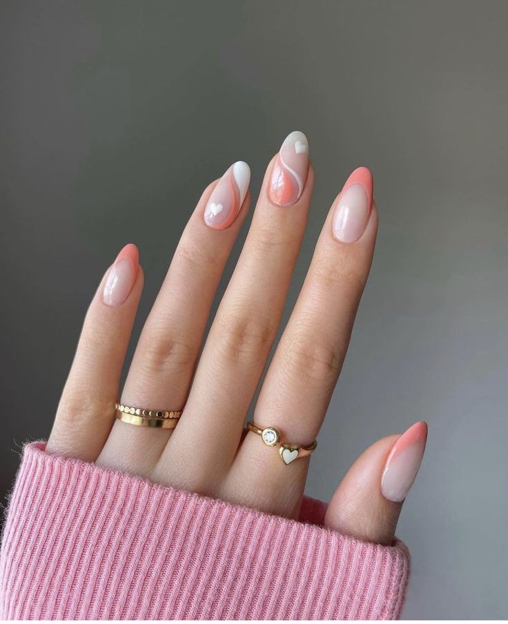 The nails in picture are nothing short of wearable art. With an ombre of peachy pink and a swirl of white and heart accents, they bring an artsy vibe to your vacation wardrobe. These nails are for the woman who views the world through a creative lens and wants her nails to be a reflection of her artistic spirit.