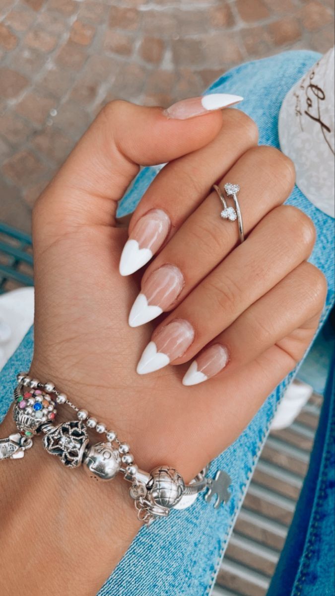 In photo the nails are a canvas of romantic expressions, with white heart accents on a sheer pink base. They are the quintessential nails for vocation when you want to bring out your inner romantic. Whether you’re holding a glass of champagne on a Parisian balcony or walking down a sandy beach, these nails speak the universal language of love.