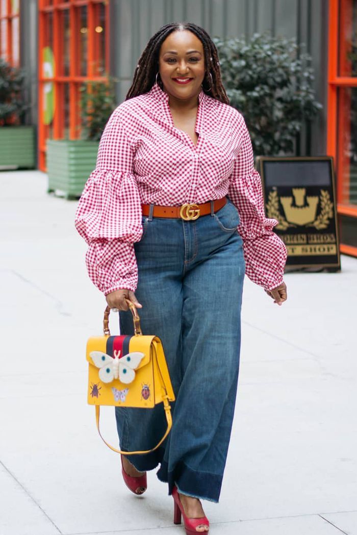 Коли справа доходить до весняного вбрання для великих розмірів, використання візерунків може додати грайливої родзинки до вашого гардеробу. Блуза в клітинку з рукавами, що підкреслюють фігуру, в поєднанні з джинсами із завищеною талією – ідеальний варіант для робочого дня в офісі або невимушеного бранчу. Додавання яскравого кольору за допомогою сміливого ременя та аксесуарів оживляє вбрання.