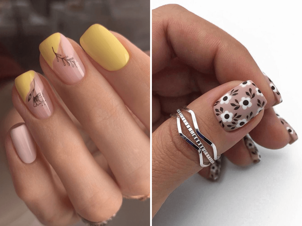 Лимонна цедра в поєднанні з м’якою лавандою в цьому манікюрі додає свіжості та пікантності вашим нігтям. Цей дизайн – життєрадісний відгук на весняні ідеї гель-манікюру на короткі нігті, поєднання яскравих і пастельних тонів для створення образу, солодкого, як весняний лимонад.