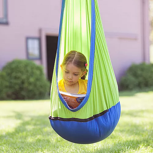 - Ощущение комфорта и уюта. Гамак создает уютное и спокойное место, где ребенок может отдохнуть, почитать книжку или просто полежать, наслаждаясь летним днем.