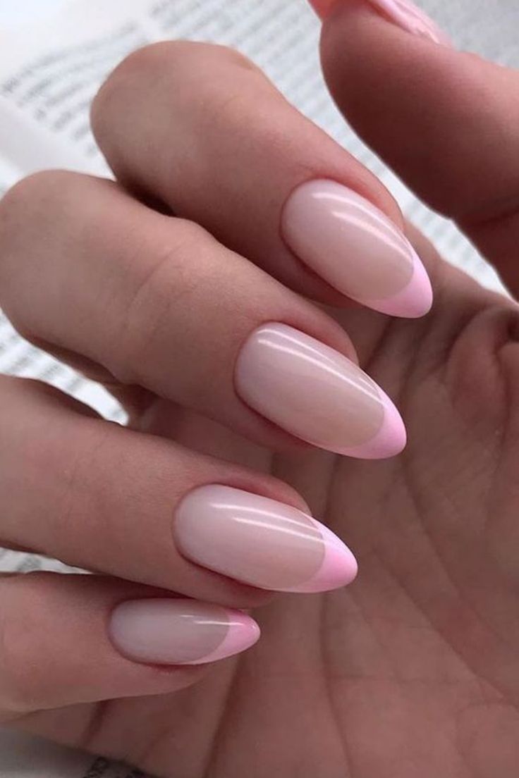 Миндалевидные ногти – основа для весеннего розового маникюра, расцветающего, как деревья в апреле. Этот образ для женщин, которые находят поэзию в повседневности, а миндальный весенний розовый резонирует с теми, кто предпочитает короткие и милые, но полные рассказа образы.