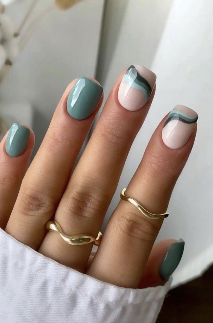 Обновление природы отображается в весеннем дизайне коротких ногтей с оттенками зелени. Мягкий шалфей или мята на коротких квадратных ногтях – это холст для творчества. Добавление простого дизайна в виде листочков может внести органичный штрих в ваш стиль, напоминая нам о росте и новых начинаниях, которые предвещает весна.