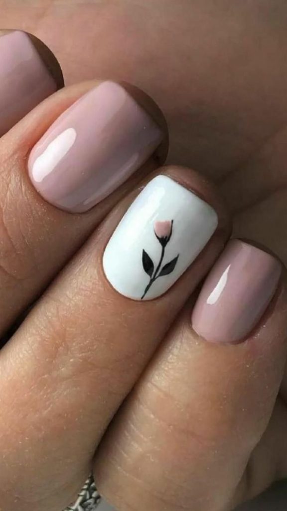 Простота сочетается с изысканностью в этом дизайне, вдохновленном ботаническими мотивами. На фоне нежно-розового цвета выделяется одинокий силуэт прорастающего бутона, воплощая суть весенних коротких ногтей – простую, но значимую красоту.