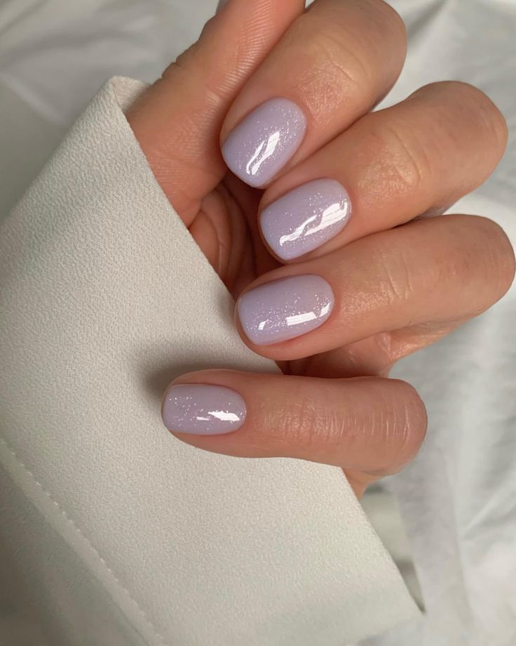 Глянцевое покрытие этих лавандовых весенних коротких ногтей добавляет им глубины и блеска, что делает их любимыми для тех, кто предпочитает классический стиль с небольшой изюминкой. Этот стиль легко носить и он безупречно сочетается с любым весенним гардеробом.