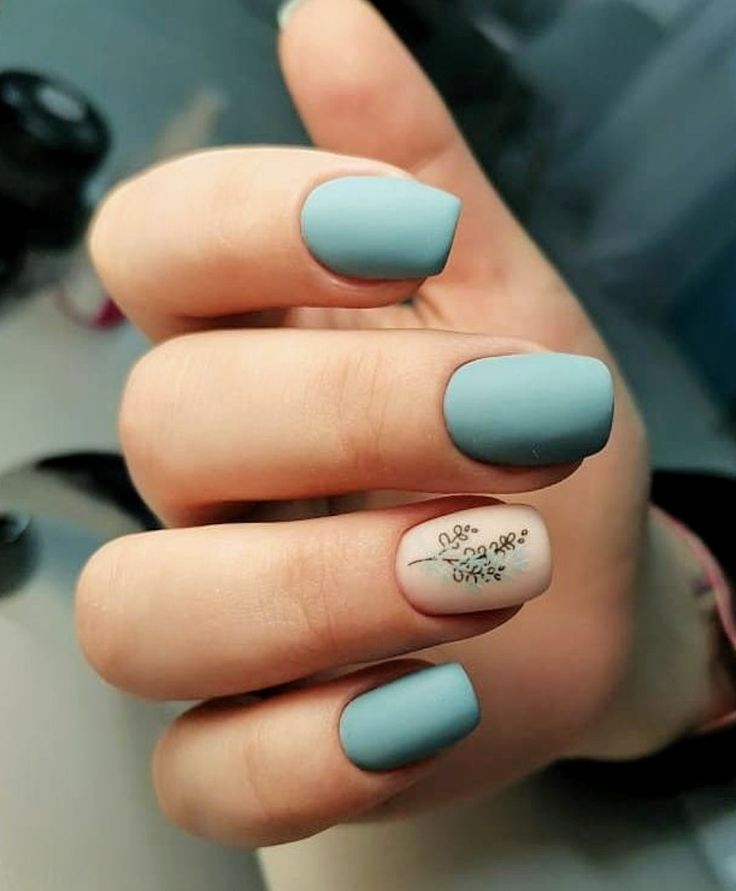 Весенний дизайн коротких ногтей делает творческий скачок благодаря ручной росписи. Независимо от того, одиночный ли это ноготь с цветочным мотивом или геометрический узор, эти крошечные полотна выражают индивидуальный стиль и внимание к деталям. Матовое покрытие на нежно-голубом фоне делает дизайн популярным, предлагая современный взгляд на классический нейл-арт.