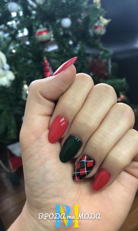 Не бойтесь экспериментировать с цветом! Зеленый и красный – это очень новогоднее сочетание. А если вы добавите чуть-чуть блеска на зеленые ногти, это создаст ощущение праздника на ваших руках.