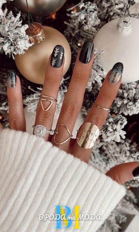 Я всегда считала, что черный маникюр может быть как элегантным, так и несколько стандартным, но когда к нему прилагаются золотистые блестки, он превращается в настоящее произведение искусства. Выбирайте такой дизайн для вечерних выходов или как акцент в вашем праздничном образе. Он отлично сочетается с деловой одеждой и вечерними платьями.
