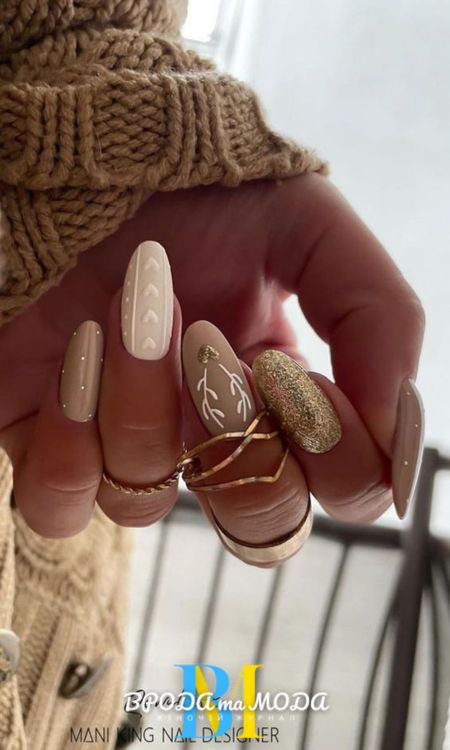 Если вы ищете что-нибудь более нейтральное, обратите внимание на маникюр в зеленых и золотистых тонах. Здесь гармонично сочетаются матовые и блестящие поверхности, а акцент сделан на лаконичность линий и простоту форм, напоминающих о природной красоте.