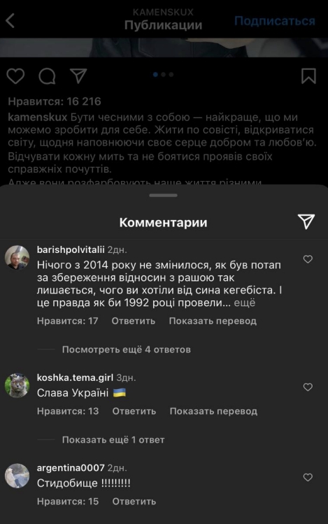 «Быть честными с собой — лучшее, что мы можем сделать для себя. Жить по совести, открываться миру, ежедневно наполняя свое сердце добром и любовью. Его каждое мгновение.” – написала Каменских.