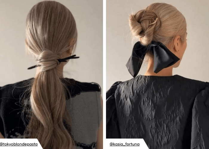 Для того, щоб ваш пучок виглядав ідеально протягом усього дня, використовуйте засоби для додання текстури та фіксації. Чорна банта повинна бути з якісного матеріалу, який не втратить форму.