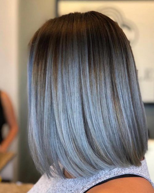 Це волосся, наче полотно нічного неба, пофарбоване у відтінки м’якого графіту та сталі, з найтоншим переходом від темного коріння до світліших кінчиків, що створює враження сучасності та стильності.