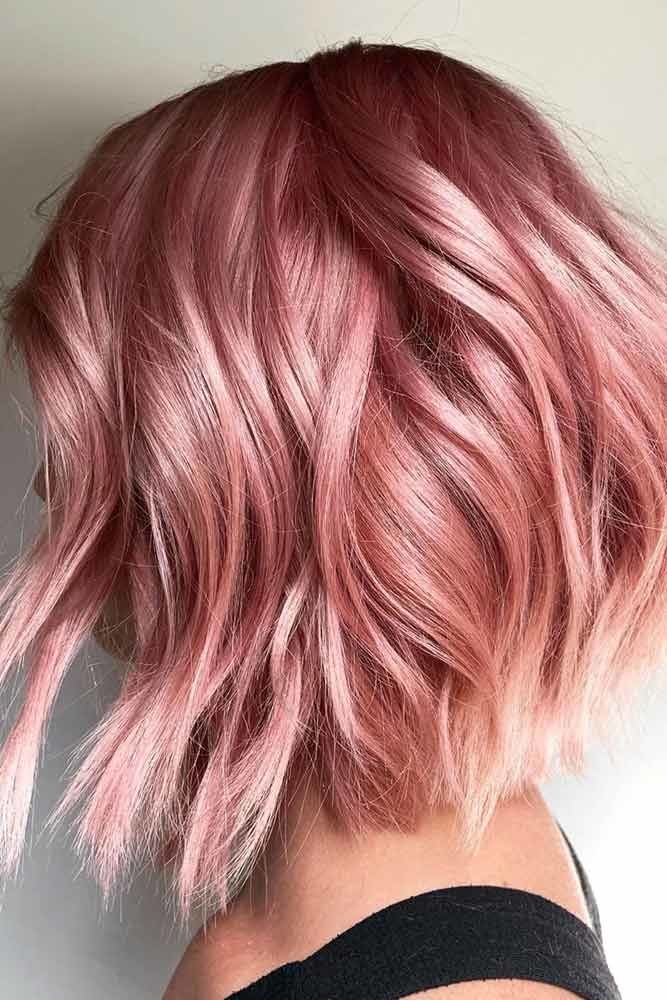 Цей шедевр з рожевого золота, який виглядає так, ніби його занурили в теплі відтінки призахідного сонця, – справжній шедевр для книжок. Поєднання рожевого і русявого кольорів виглядає свіжо і яскраво, що робить його найкращим вибором для тих, хто шукає весняну стрижку з відтінком романтики.