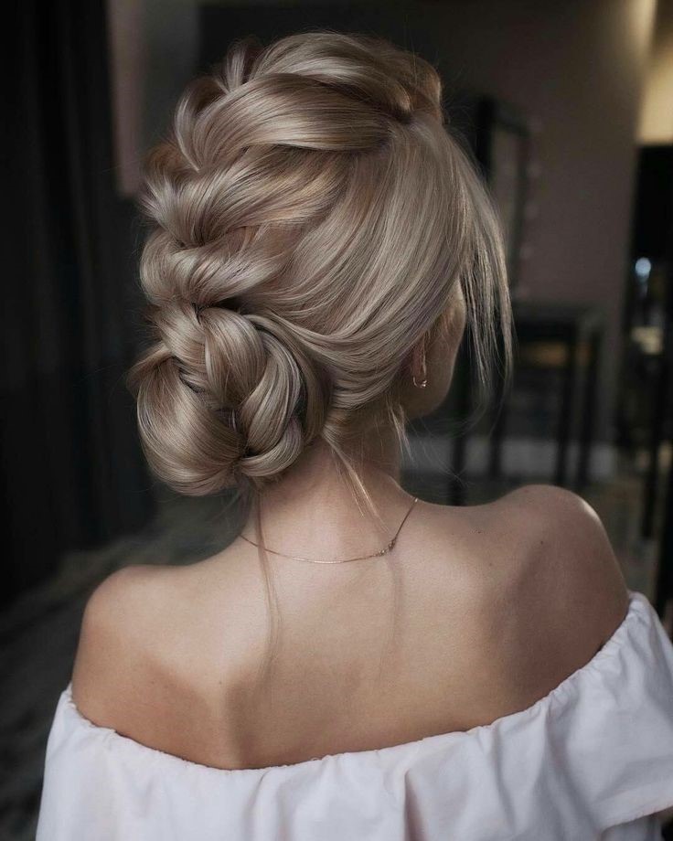 Для тих, хто шукає натхнення для весільної зачіски, Soft Whisper Bun – гармонійний вибір. Це елегантний низький пучок, в якому пасма переплітаються, утворюючи ніжний, витончений візерунок, віддзвін гарнітурний лагідних апрельських вітрів. Цей стиль покоханий за свою вічну грацію та ніжне заявлення, яке він робить.