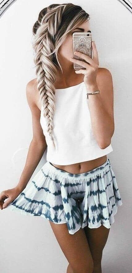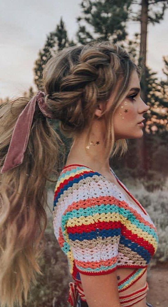 Оскільки літні фестивалі ваблять, мила літня зачіска на довге волосся, яка може витримати енергію і рух натовпу, одночасно роблячи заяву, має важливе значення. Тут ми бачимо образ, в якому все про об’єм і вібрацію: недбала коса “риб’ячий хвіст”, підкреслена барвистим шарфом, який кричить про фестивальні веселощі.
