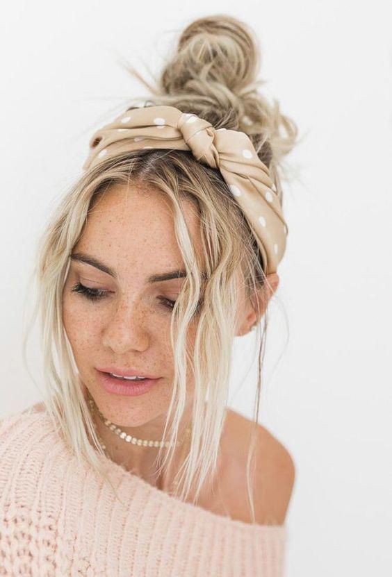 Ми зав’язуємо все у вузлик за допомогою милої та вишуканої легкої літньої зачіски “Вузлик з шарфа”. Цей пучок з верхнім вузлом, доповнений шарфом у горошок, вносить грайливий поворот у класичну зачіску. Вона особливо підходить для власниць середнього або довгого волосся, які хочуть залишатися прохолодними і водночас шикарними під час літньої спеки.