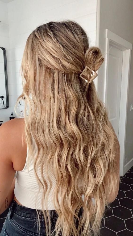 Продовжуючи нашу сагу про літні зачіски, ми зустрічаємося з приморською зачіскою “Напівхвіст”. Ця зачіска є квінтесенцією легких літніх зачісок для довгого волосся, пропонуючи вільну спину і водночас демонструючи струмливі пасма, гідні богині. Це ідеальний ансамбль для хвиль і заходу сонця, що обіцяє елегантність без зайвих зусиль.
