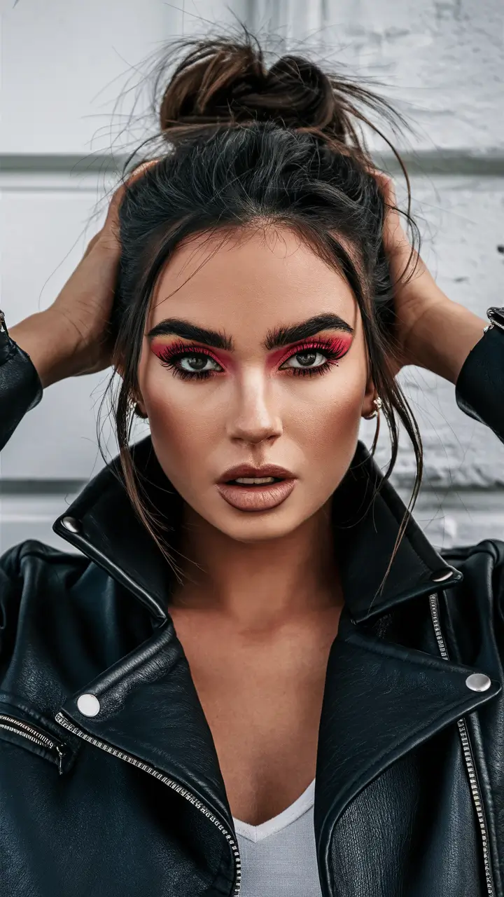 Текстурований високий пучок пропонує об’єм і висоту, що робить його ідеальною зачіскою для офіційних заходів. Недбалий, розпущений вигляд додає грайливого контрасту структурованій зачісці, роблячи її одночасно вишуканою та сучасною. Ідеально підкреслює риси обличчя та підходить для власниць середнього та довгого волосся.