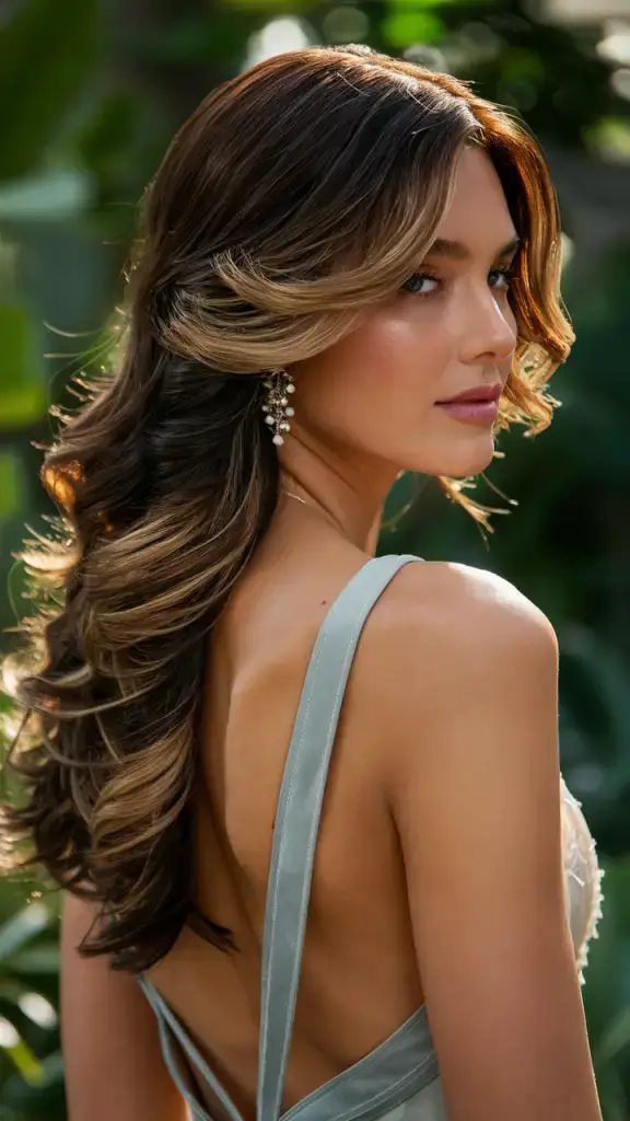 Ці м’які хвилясті шари створюють природний, вигорілий на сонці вигляд, що ідеально підходить для теплої погоди або прогулянок на пляжі. Хвилі додають текстури та руху, роблячи волосся більш об’ємним і легко укладаються. Ідеальна для весни або літа, ця зачіска випромінює розслаблену, але відполіровану атмосферу.